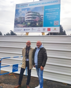 Mardi 14 novembre ,Claude ASSIER, PrĂ©sident d’AVEYRON HABITAT et JĂ©rĂ´me LAROCHETTE, Directeur GĂ©nĂ©ral d’AVEYRON HABITAT se sont rendus sur le chantier de BEAUREGARD pour assister Ă la mise en place du panneau prĂ©sentant le visuel des futurs bâtiments 👍!